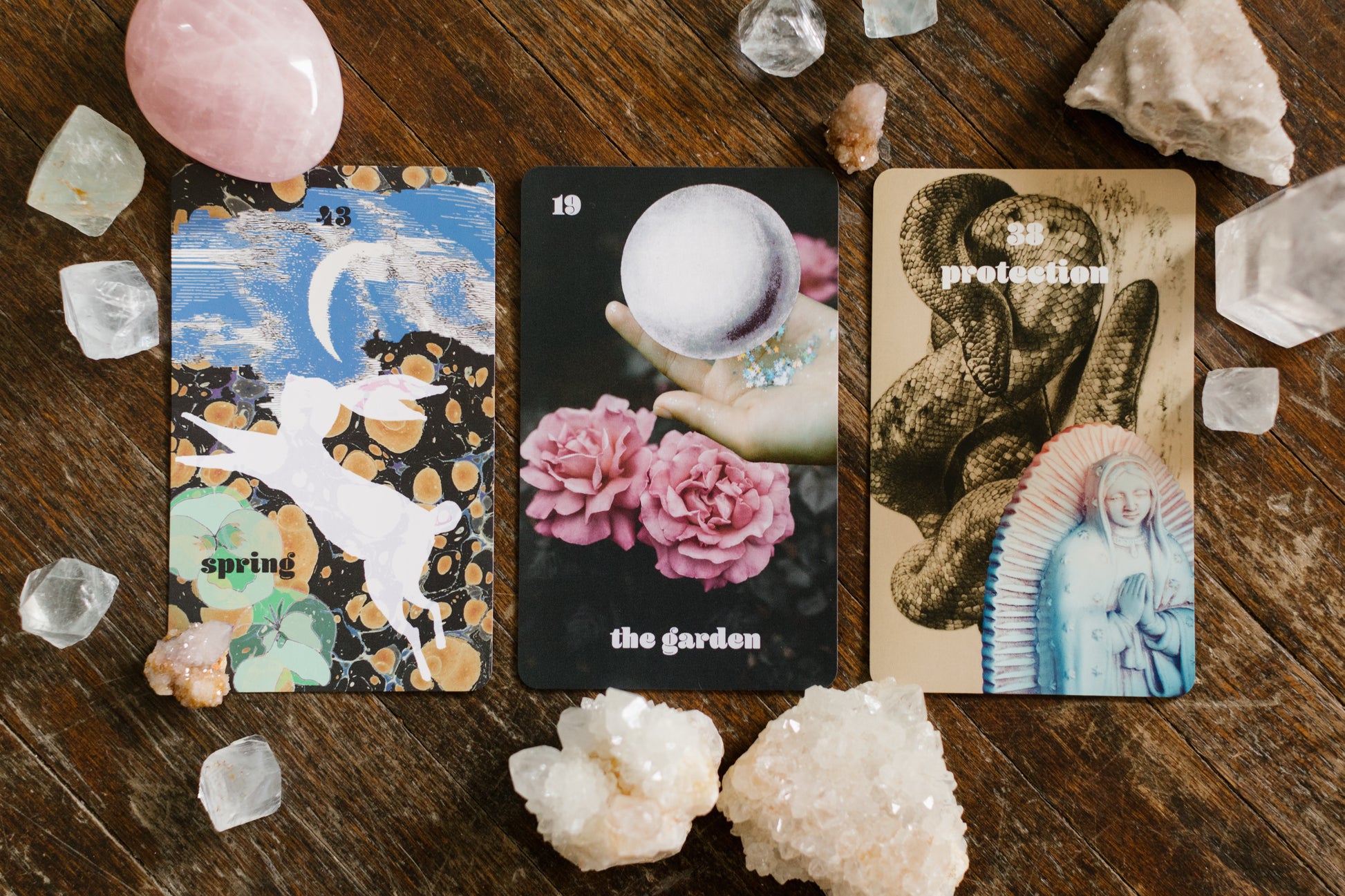 I use a variety of oracle decks for your reading and generally pull six to eight cards including a guide card for you to use as a meditation in the months following.